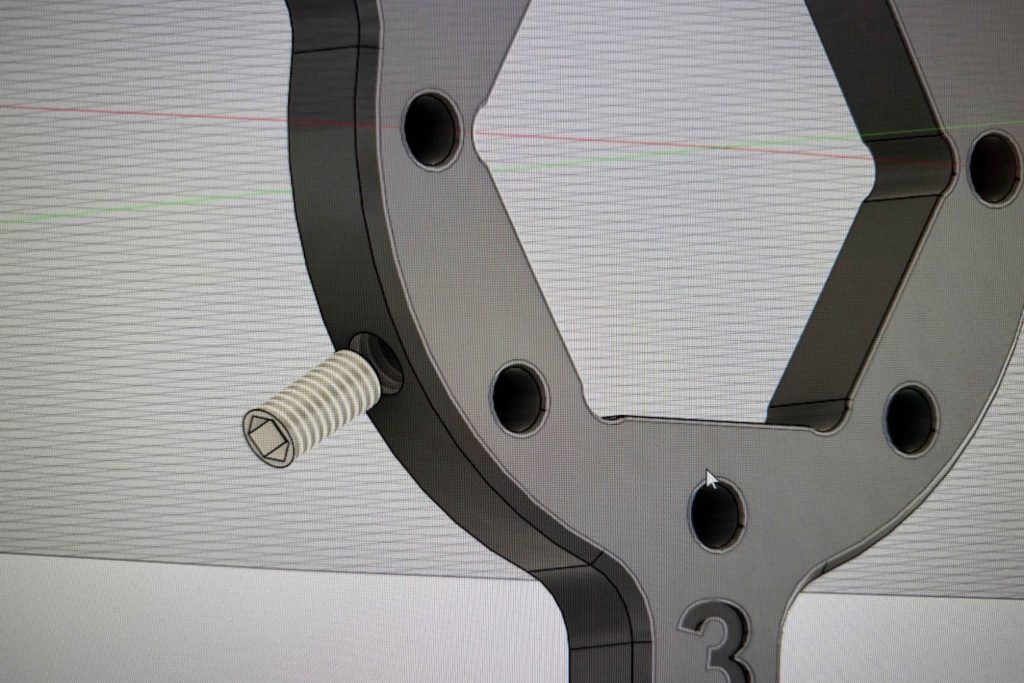 キャリパー取付のネジ山を傷付けないようにジュラルミンで切削加工した軸にシリコンチューブを履かせております。